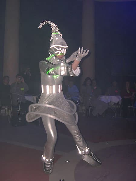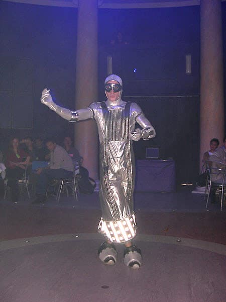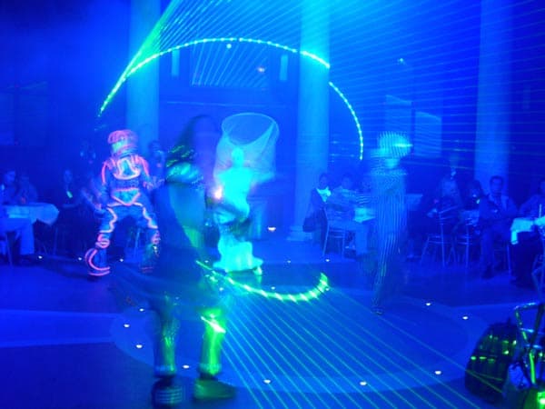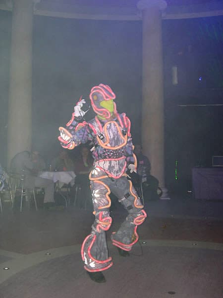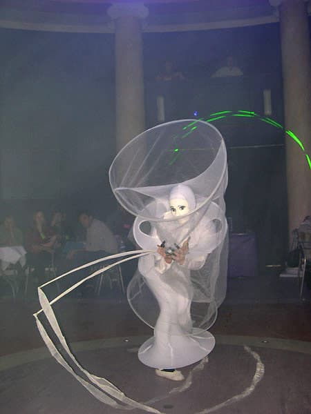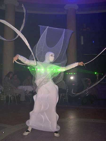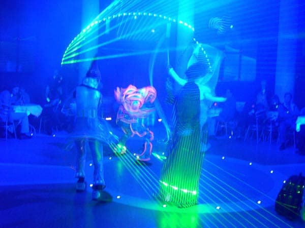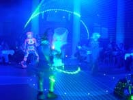 Чудеса на этом не закончились. После окончания лазерного светопредставления на сцену начали один за другим выходить «инопланетные существа», олицетворяющие, по-видимому, население будущего нашей планеты, оснащенной последними достижениями Logitech :)). Неземные чудища-гуманоиды :), некоторые из которых выглядели вполне симпатично и дружелюбно, выносили в зал новинки Logitech, демонстрируя их в необычном танце.