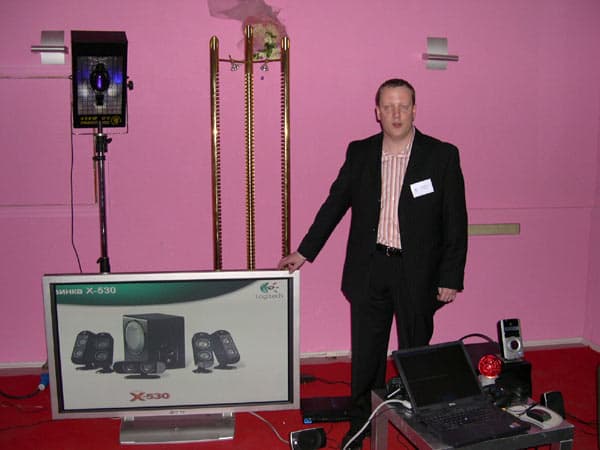 На круглой сцене клуба V-Jo, где должна была пройти пресс-конференция, царил полумрак, в затуманенном зале играла музыка, а по стенам бродили лучи прожекторов, касаясь больших плазменных панелей, демонстрирующих логотипы Logitech. Участники мероприятия замерли в ожидании начала действа, которое обещало быть интересным.