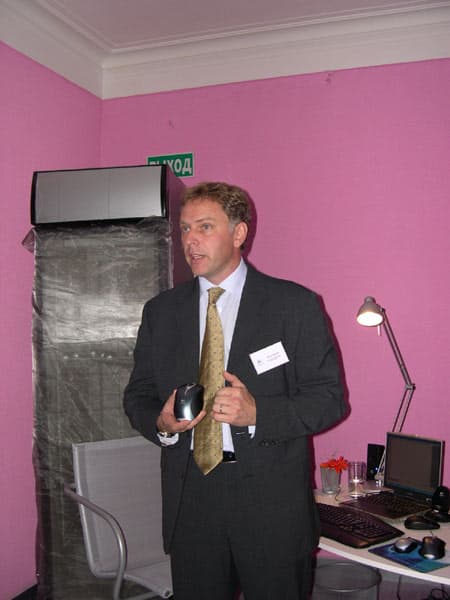 Евгений Марьин, менеджер по продажам компании Logitech в России, сделал доклад на тему «Logitech в России. Что нового?».