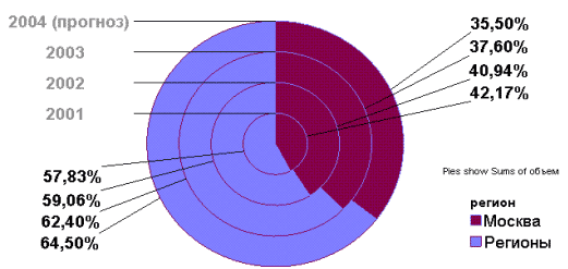 Николай Артеменко привел диаграмму структуры продаж компании по регионам: