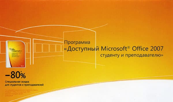 Второе предложение Microsoft — Student Select. Это акция, в рамках которой студенты любого вуза и формы обучения могут приобрести стандартный или профессиональный выпуск Microsoft Office 2007 со скидкой 80%. Что для этого требуется?