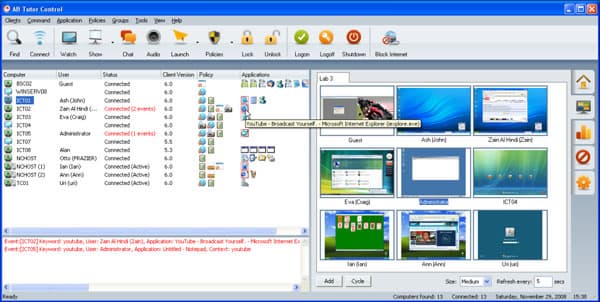 Все управление рабочими местами и их взаимодействием с узловым компьютером ведется через предустановленную утилиту MultiPoint Manager. Она предлагает лишь базовый функционал, но для начала этого вполне достаточно. Если же администратору понадобятся дополнительные возможности (например, возможность следить в прямом времени за тем, что делается на каждом из рабочих мест), он может приобрести дополнительное ПО. Например, AB Tutor Control.