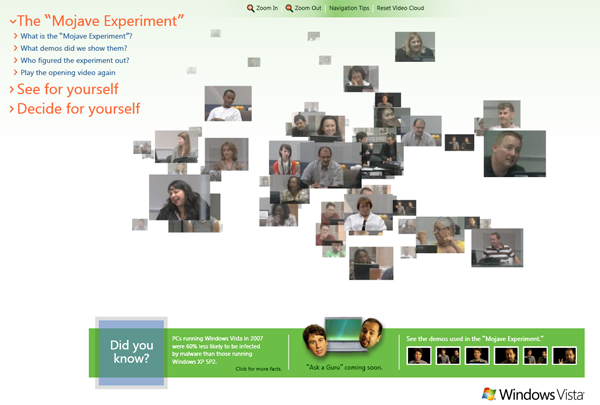 Здесь следует отметить два момента: прежде всего, по-прежнему неоднозначную репутацию системы. Уже полтора года прошло с момента выхода Vista на рынок, а отношение пользователей (как рядовых пользователей, так и IT-профессионалов) остается преимущественно скептическим. И даже появление первого Servise Pack не исправило ситуацию. В Мicrosoft проблему видят и делают попытки как-то ее решить, но, похоже, до сих пор не имеют четкого плана действий. В числе прочего на семинаре речь шла о Mojave Experiment: людей опросили об их отношении к Windows Vista, а затем давали попользоваться ей, «загримировав» под другую операционную систему. В итоге, те, кто сначала ругал Vista, потом отзывались об опробованной системе очень хорошо — и были крайне удивлены, что это, оказывается, и есть Vista (видеоролик об эксперименте можно посмотреть здесь).