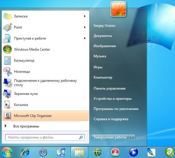 И здесь следует отметить, что для выключения компьютера теперь не надо щелкать по стрелочке и открывать отдельную менюшку. Достаточно нажать на «Завершение работы». Казалось бы, мелочь, но меня она особенно порадовала. Как мы помним, в Windows Vista на этом месте была кнопка выхода в спящий режим; можно было изменить настройки, но рядовой пользователь вряд ли стал бы этим заниматься. Большинство обладателей Vista даже не предполагало о такой проблеме. Теперь же она не возникнет.