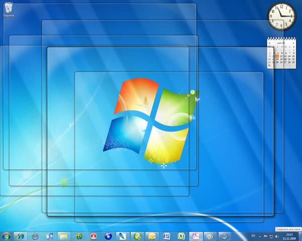 Если на него навести мышку, то все окна станут прозрачными. Выглядит это следующим образом: