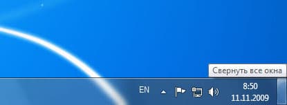 Честно говоря, я долго не мог понять, какой в этом практический смысл. Более того, когда однажды мышка случайно заскочила в правый нижний угол и окна внезапно исчезли, я изрядно перепугался почему исчезли с экрана мои работающие приложения и открытые документы? Это, разумеется, с непривычки, но момент показательный. Потому что практическая нагрузка у этой «фишки» почти нулевая. Разве что вам хочется увидеть работающие гаджеты, но лень при этом сделать один щелчок мышкой.