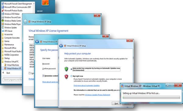 После инсталляции Microsoft Virtual PC вы создаете виртуальную среду Windows XP и устанавливаете XP Mode. При этом приложения в XP Mode вы можете запускать прямо с рабочего стола Windows 7, как если бы они были установлены в самой системе Windows 7. Также можно совместно использовать буфер обмена, USB-устройства (накопители, принтер, сканер), основные папки на диске C (Мои документы, Рисунки, Рабочий стол, Музыка и Видео).