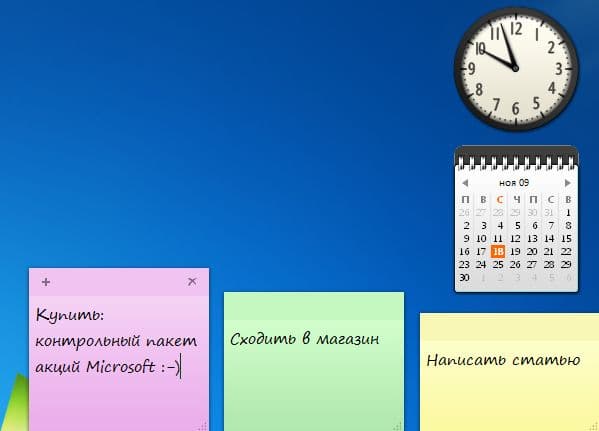 Последнее стандартное приложение, которое мы рассмотрим, — это Записки (Sticky Notes). Оно появилось в Windows Vista, но в Windows 7 этот простейший, на первый взгляд, инструмент стал чуть более эффективным. Во-первых, к Запискам теперь есть доступ прямо из основного меню Пуск. Во-вторых, можно менять цвет записок. Это удобно, когда у вас много записок и вы хотите их как-то рассортировать, чтобы сразу видеть, например, где срочные дела, а где не очень.