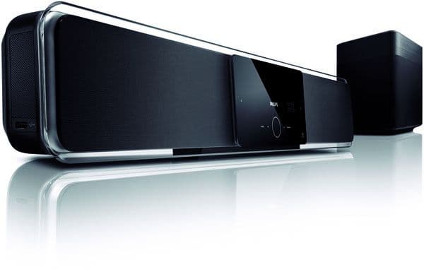 Благодаря плоскому корпусу систему можно как подвешивать на стену, так и устанавливать на подставку. А беспроводное соединение позволяет размещать сабвуфер где угодно и не портить интерьер толстыми шнурами. Последнее, впрочем, вызывает определенные подозрения по части качества звука (равно как и габариты динамиков). Но никто и не позиционирует данную технику как аудиофильскую. Это чистый LifeStyle, призванный радовать своего владельца не только (и не столько) звучанием, сколько внешним видом. Микросистема Philips MCD289 доступна на российском рынке с июля этого года по рекомендованной розничной цене 11990 рублей. К совсем иной ценовой категории относится домашний кинотеатр Ambisound HTS8140 Soundbar из серии Philips Design Collection (35000 рублей).
