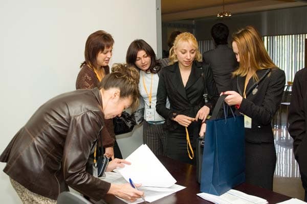 В зависимости от того, кем был участник конференции: представителем дилера, журналистом либо еще кем-то, ему вручался различный набор пакетов и сумок, заполненный справочно-рекламной информацией, образцом продукции одного из вендоров и расписанием конференции, а также беджик с различными цветами ленточек.