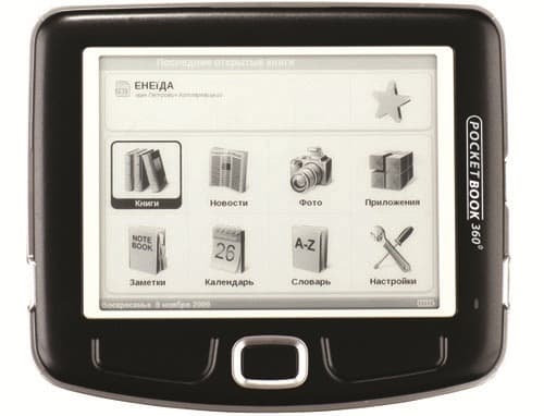 Следующей моделью компании был PocketBook 360°. Этот ридер выглядит совсем иначе, нежели PocketBook 301. Его отличает горизонтальная ориентация и существенно более компактные размеры.