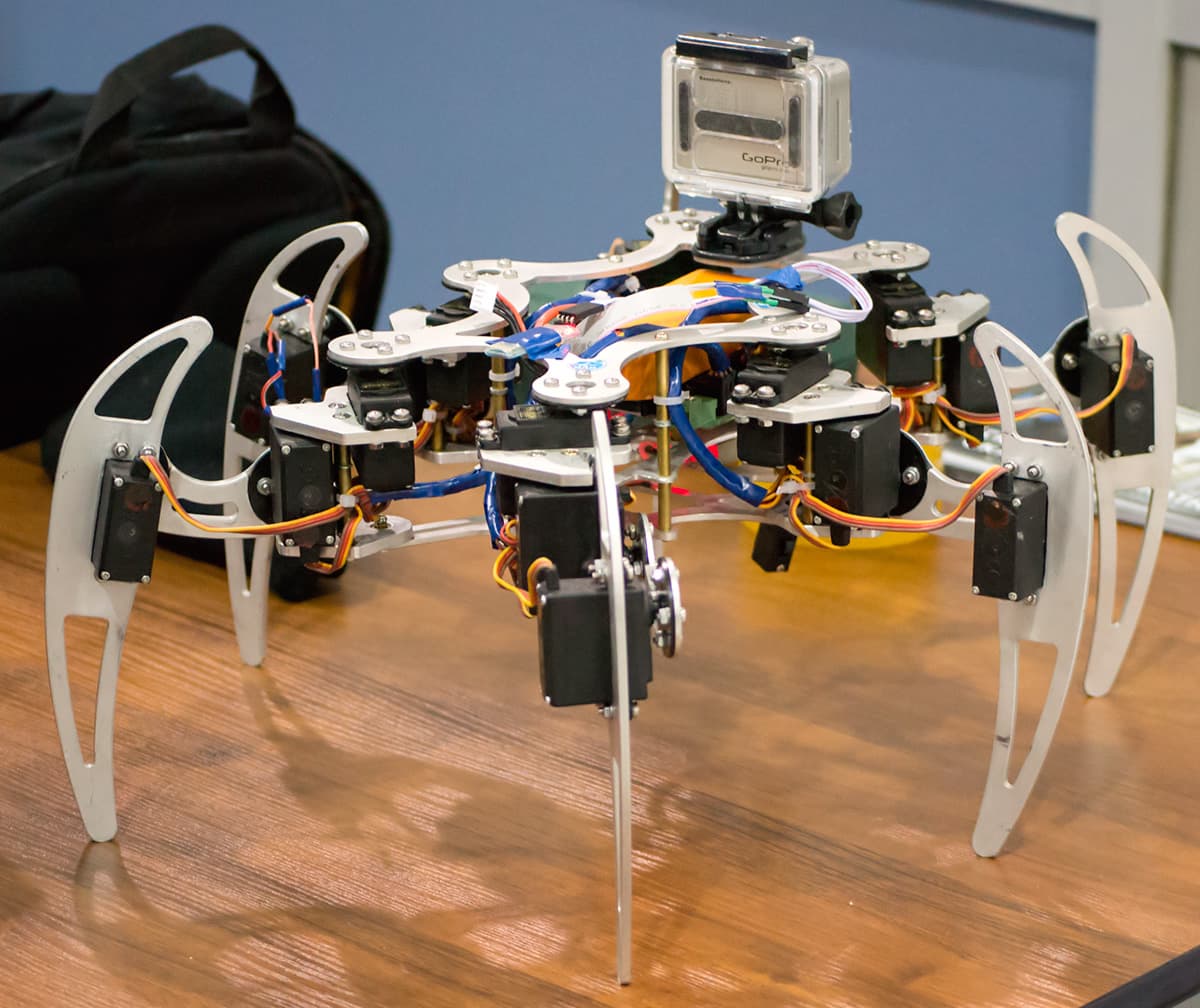Как видно, идущий более уверенно робот из набора Lego задел препятствие и был дисквалифицирован. А вот второй робот, видом и повадками напоминающий жука, успешно преодолевает трассу.
