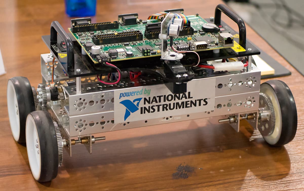Лапыгин Д. А.: Программное обеспечение написано в среде National Instruments LabView. Эта графическая среда разработки кода, позволяющая разрабатывать программы для промышленных систем, изначально создавалась как ПО для автоматизации научных исследований. Достоинства данного ПО — возможность четкого и однозначного распределения процессорного времени и возможность выполнения кода в режиме real time. Также использовалось ПО машинного зрения RoboRealm, но в этом году машинное зрение мы не применяли.