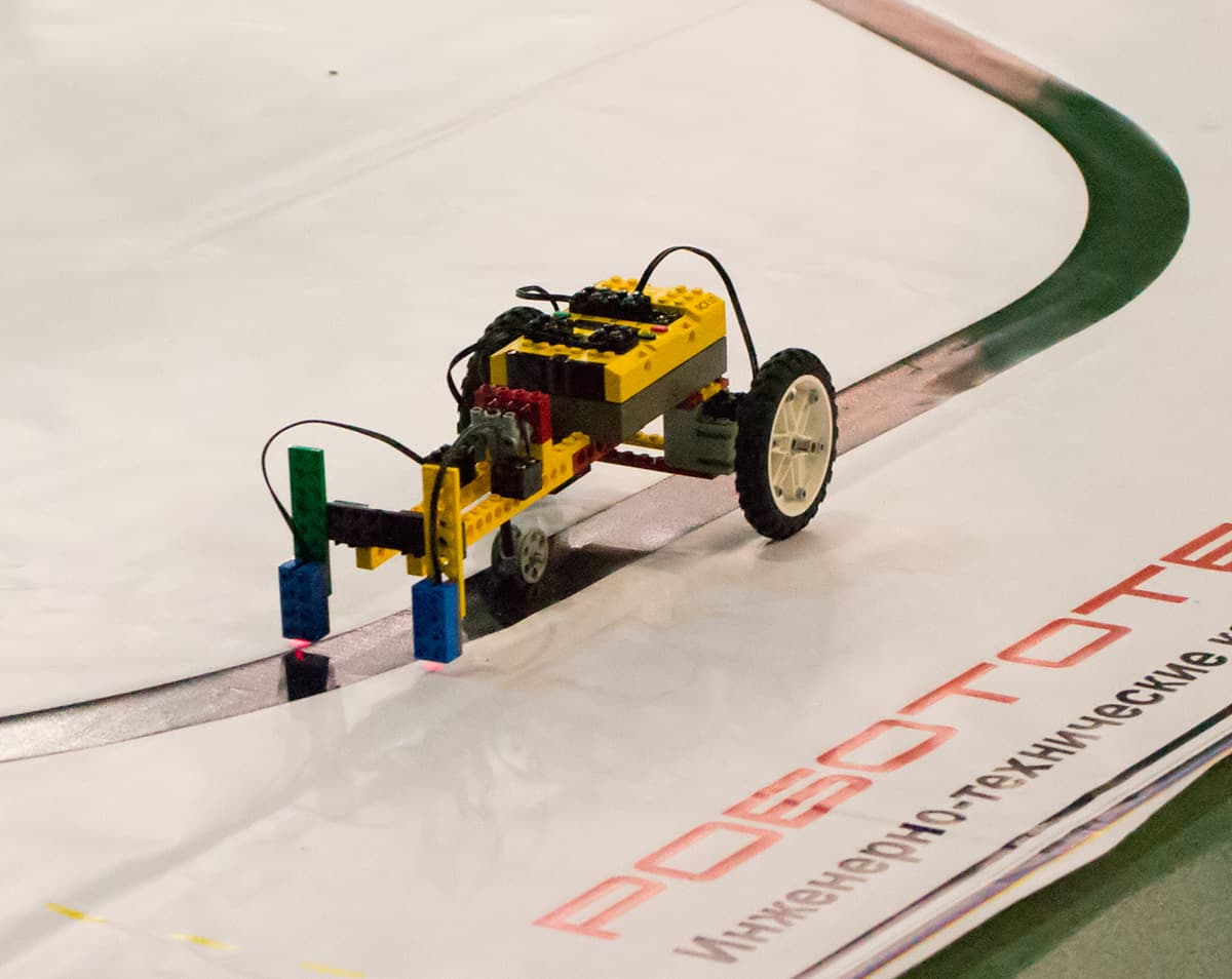 В номинации «Линия» могут принимать участие автономные роботы с максимальными габаритами 40×40×40 сантиметров и весом до 10 кг. Робот должен максимально быстро пройти трассу по черной линии шириной в 5 см. Несмотря на простоту условий, борьба разгорелась не на шутку. На удивление много было юных участниц этого состязания.
