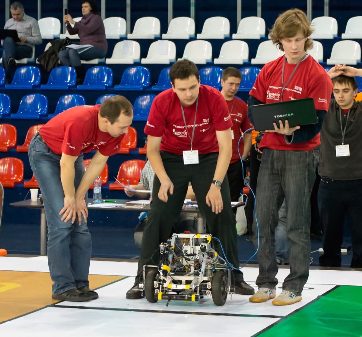 Лапыгин Д. А.: Сложно сказать. Любая задача может быть решена разными методами. Кто-то использовал сенсоры цветных линий, кто-то — лазерный сканер, кто-то — гироскопы, кто-то — сенсор Kinect. К сожалению, те выступления других команд, что я видел, показывают, что даже столь простые условия соревнований вызывают большие проблемы с решением соревновательной задачи. Но прогресс многих команд также радует. Безусловно сильны команды Рязани, Ульяновска, Нижнего Новгорода. И прогресс за пару лет очевиден.