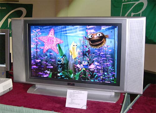Как видите, устройство явно претендует на то, чтобы стать центром цифрового дома. Сюда же стоит отнести новые продукты, представленные на конференции, выход которых на рынок планируется в этом году. Во-первых, это большой широкоформатный ЖК-телевизор, а во-вторых — плазменная панель! Эти продукты, особенно если учесть цены, озвученные на конференции (порядка $3000 и $4000 соответственно), могут стать хитами рынка.