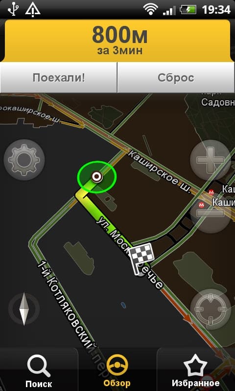 - При построении маршрута приложение учитывает пробки на улицах городов и на междугородних трассах. Актуальные данные о пробках поступают в Яндекс.Навигатор каждые 2 минуты.