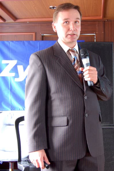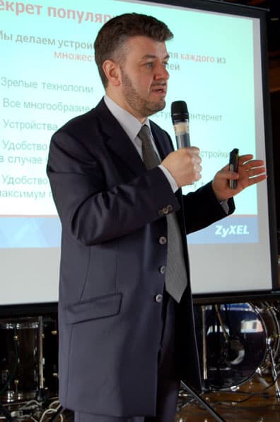 Следующим по списку был Илья Уманский, директор департамента по продажам и маркетингу. Он пояснил, чем обусловлен стремительный рост оборота компании. По его словам, компания ZyXEL начинает работать только с теми технологиями, которые уже получили признание пользователей и доказали свою жизнеспособность. Кроме того, не стоит забывать, что ZyXEL обращает внимание лишь на технологии, способные послужить «мостом» в интернет для пользователя. «Мы понимаем, кто является нашим клиентом и что он умеет», — сказал Илья Уманский.