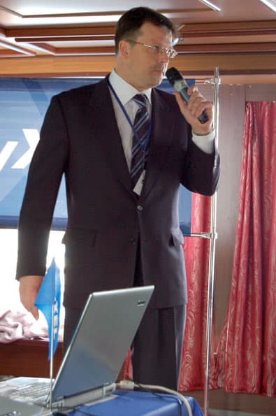 Максим Медведев, директор по продукции, обрисовал в общих чертах новые разработки компании и новинки продукции для офисных и домашних пользователей. Впрочем, новинкам продукции ZyXEL будет посвящена отдельная заключительная часть нашего отчета с теплохода «Николай Карамзин».