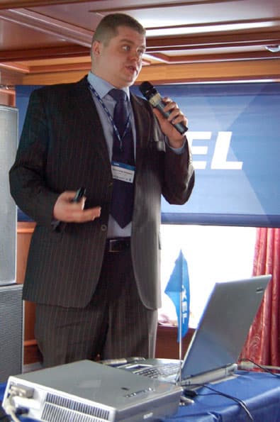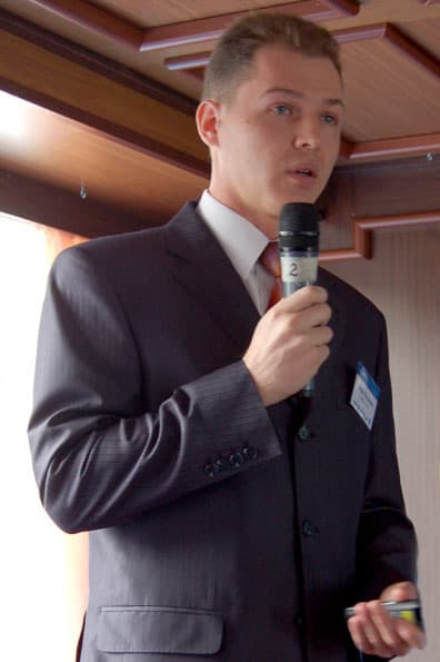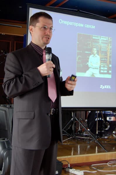 Следующим в программе конференции был заместитель директора по работе с партнерами Владимир Пропой. Его обращение относилось в основном к партнерам компании. Владимир «обрадовал» присутствующих, что в этом году вырастут планки для получения званий «золотых» партнеров и реселлеров. Также Владимир напомнил, что ZyXEL ценит своих партнеров, а потому любая фирма всегда может обратиться за поддержкой непосредственно в представительство компании ZyXEL.