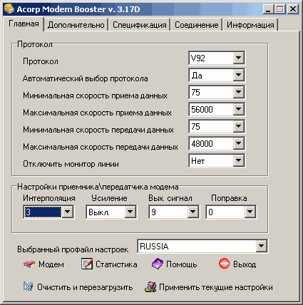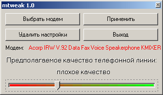 Давно известна такая интересная особенность отдельных пользователей, как нежелание читать документацию. Если бы этой особенности не было, то не появилась бы на свет и эта программа, хотя более точное её определение утилита. В чём же здесь суть? Если производить грамотно настройку модема под конкретную линию, то на это нужно потратить достаточное количество времени и обладать запасом знаний. Все полученные настройки необходимо записать в профиль модема, пользуясь какой-либо терминальной программой, а в дальнейшем вызывать эти записанные настройки такой командой инициализации, как ATZ. К сожалению, этот путь для большинства пользователей оказался неприемлем, а потому многие инициализируют модем фабричными настройками (например, AT&F), а затем через дополнительную строку инициализации в той же Windows вносят коррективы, для настройки модема в конретных условиях. Хорошо это или плохо судить не будем, но констатация этого факта заставила в документацию по модемам внести специальные загрубленные настройки в виде ограничения битовых скоростей через AT+MS команды. А чтобы облегчить жизнь пользователя, стойко не желающего разбираться в документациях и была создана эта утилита.