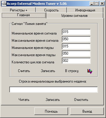 Буквально во время подготовки этого обзора появилась очень долгожданная программа для настройки аппаратных модемов Acorp External Modem Tuner. Модемы могут быть настроены для эксплуатации через s-регистры и специализированные команды, однако в век Windows простой пользователь испытывает некоторые трудности. В форумах и конференциях нередко можно услышать просьбу: «Подскажите универсальную строку инициализации!». А как её можно подсказать, если ее как таковой нет и быть не может? Приходится отправлять пользователя на свершение подвига, заключающегося в чтении документации. Увы, но такая работа многим не по силам. В связи с этим было принято решение разработать программу, облегчающую взаимодействие с модемом.