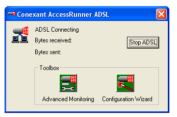 Пункт "Configuration Wizard" запускает пошаговый мастер настройки модема. Пункт "Advanced Monitoring" запускает стандартный интерфейс настройки