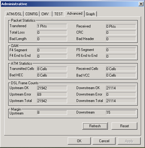 Остальные пункты утилиты настройки служат для тестирования соединения и для отображения статистики соединения.