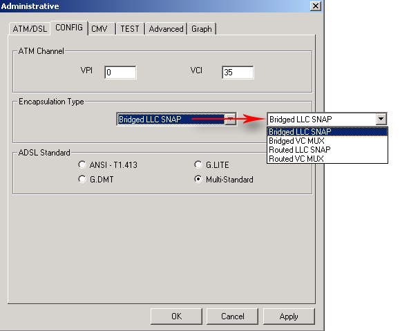 Помимо этого здесь выбирается тип ADSL модуляции. Режим Multi-Standatd (он же MMODE) означает, что модуляция будет выбрана автоматически. Значение данного параметра также устанавливается провайдером.