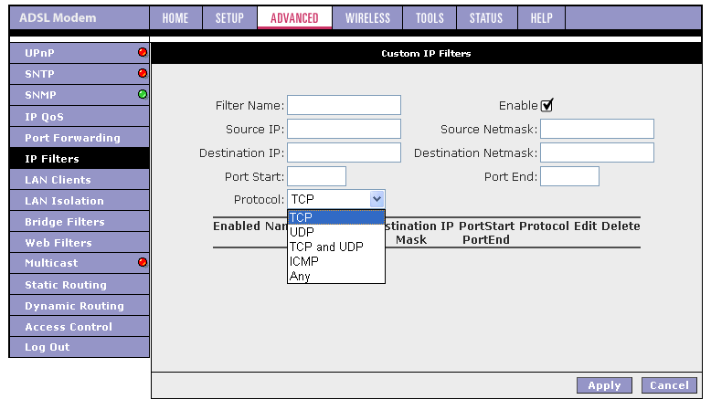 | возможность задания размера MTU вручную | да, только в PPPoE и PPPoA режимах | |||