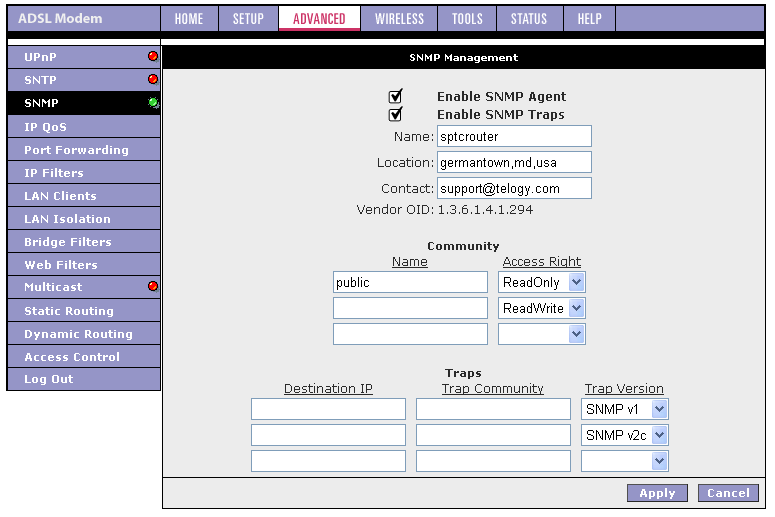 Конфигурацию устройства можно производить через WEB-интерфейс или по протоколу Telnet. Скриншоты WEB-интерфейса приведены ниже: