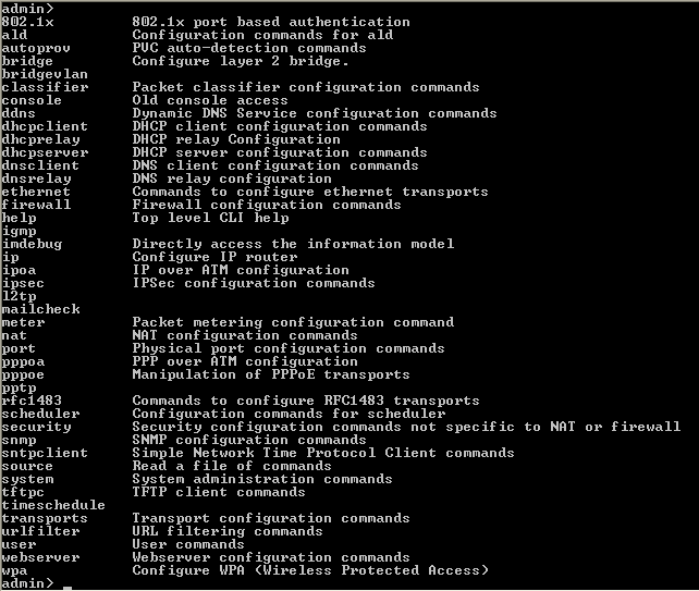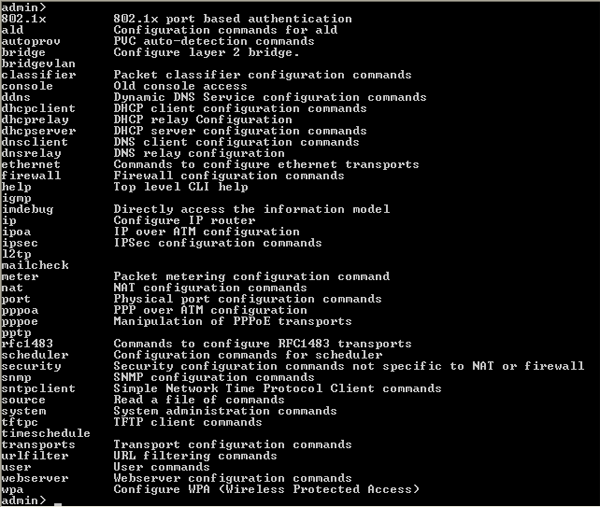 Список команд и настроек устройства в консольном режиме очень велик, и их описание производиться не будет. С помощью консольных команд можно полностью настроить маршрутизатор без использования WEB-интерфейса.