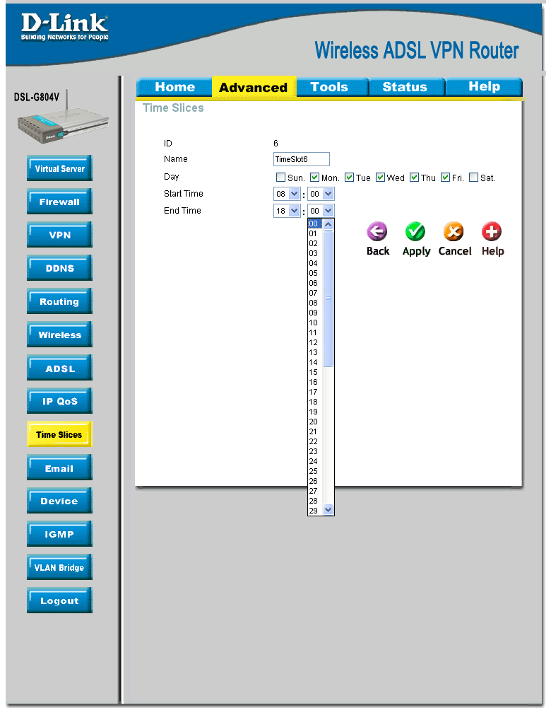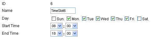 При настройке виртуальных серверов, правил файрвола и некоторых других сервисов возможно использование расписания. Общее количество правил расписания ограничено 16-ю. При создании правила расписания задается день недели и интервал действия с точностью до 1 минуты.