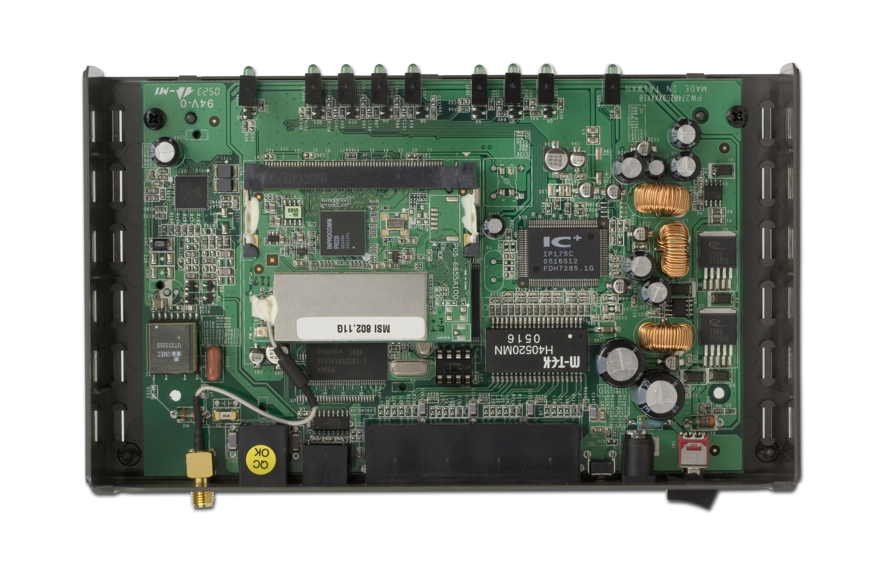 Функциональные возможности устройства: маршрутизатор ADSL2/2+, беспроводная точка доступа IEEE 802.11g, IPSec, PPTP и L2TP VPN-сервер, 4-портовый коммутатор 10/100.