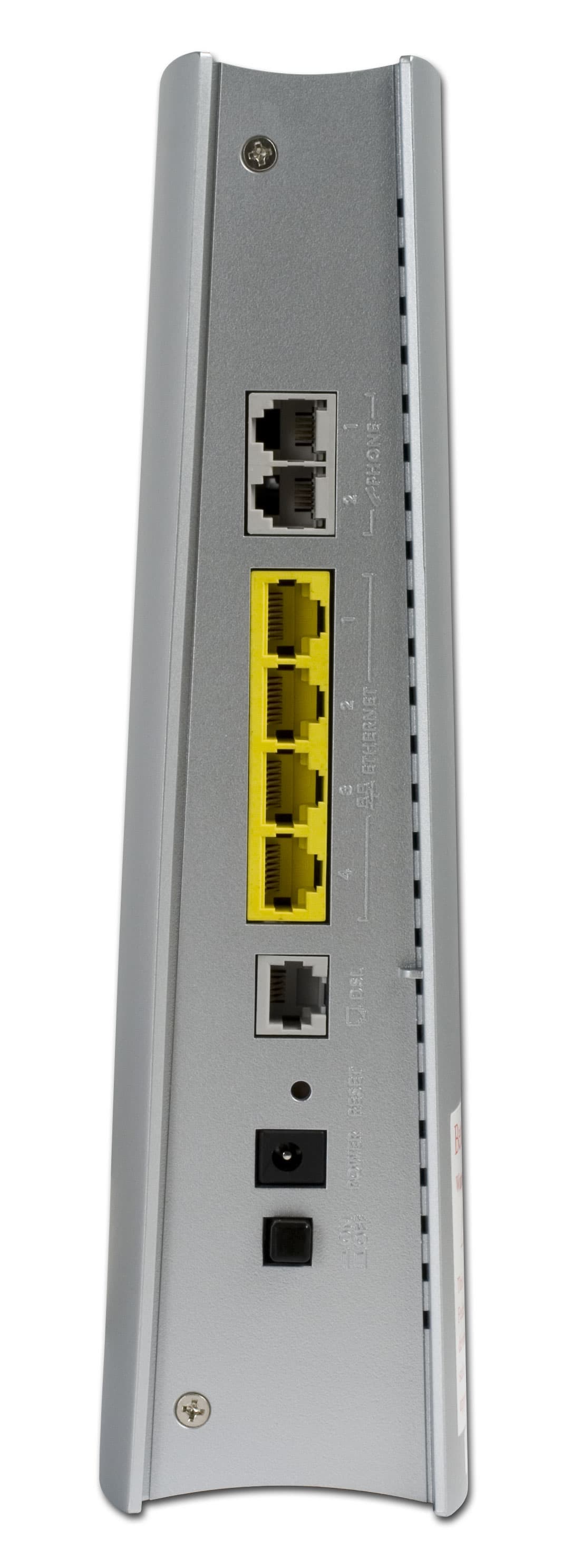 Функциональные возможности: ADSL-маршрутизатор и межсетевой экран с возможностью шейпинга трафика, 4-хпортовый коммутатор с автоопределением полярности на портах (Auto MDI/MDI-X), IPSec VPN-сервер, SIP-шлюз, позволяющий подключить к устройству два аналоговых телефона и использовать их для организации IP-телефонии.
