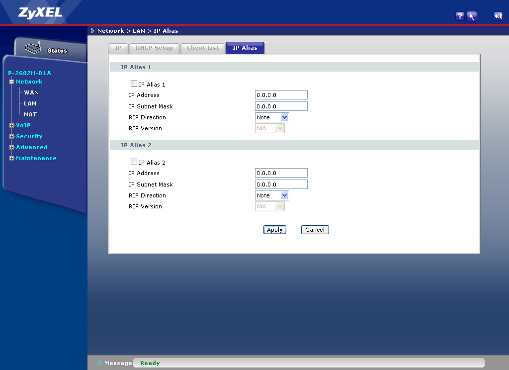 Оба типа NAT подробно рассматривались при рассмотрении других маршрутизаторов ZyXEL (ранее рассматривался аналогичный маршрутизатор с беспроводным интерфейсом ZyXEL P-2602HW EE).