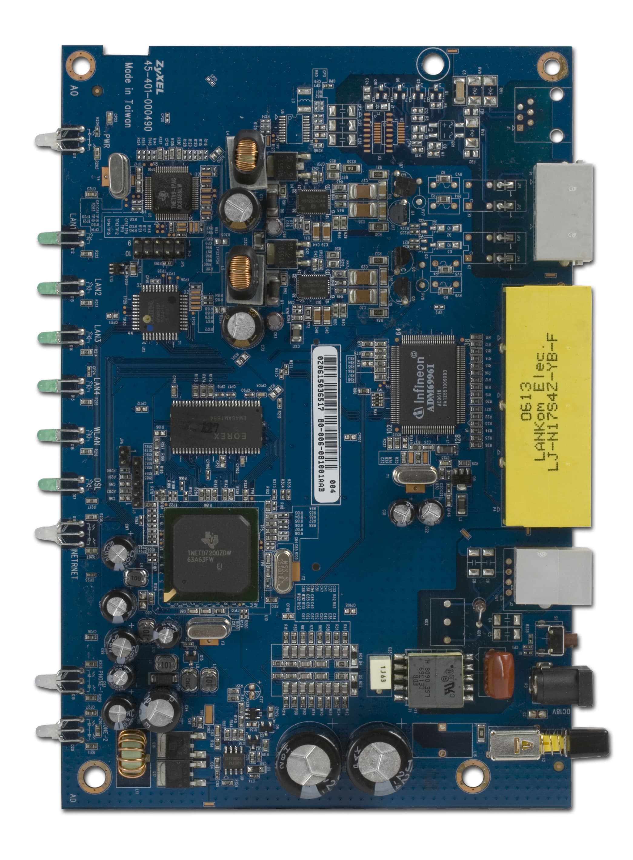 Устройство выполнено на базе процессора Texas Instruments TNETD7200 (32-битный RISC процессор для использования в ADSL-устройствах)