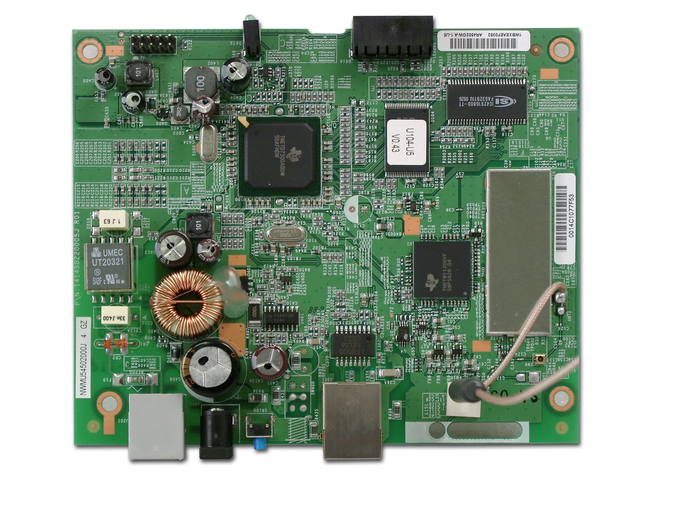 Устройство выполнено на базе процессора Texas Instruments TNETD7300AGDW (AR7) — 32-битный RISC процессор, с поддержкой ADSL, Wi-Fi, FastEthernet и USB.