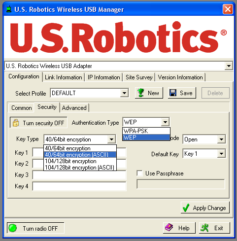 Утилита настройки адаптера имеет возможность настройки только WPA-PSK шифрования. Возможность использования WPA-шифрования не поддерживается. Windows Zero Config (встроенная утилита Windows XP) не имеет такого недостатка.