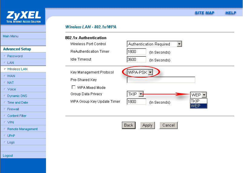 | WPA-PSK (pre-shared key) | WEP или TKIP | |||