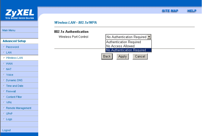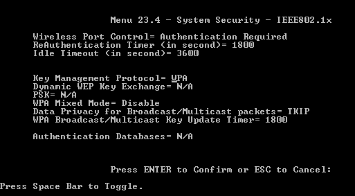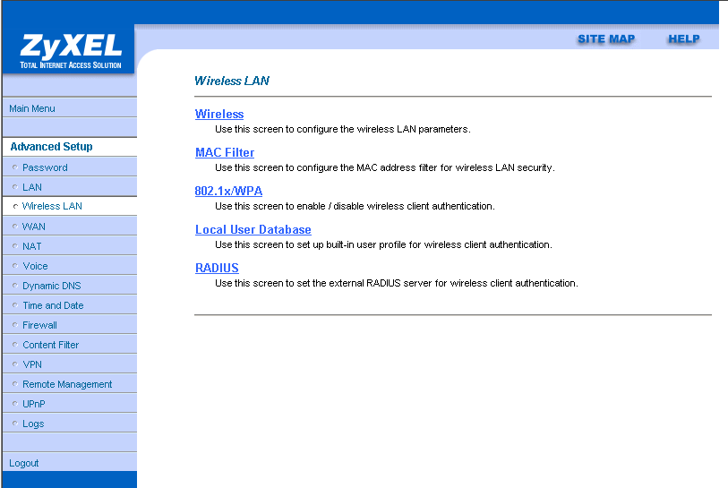 Настройки роутера не позволяют подробно задать параметры беспроводной связи, нет даже возможности выбора режима (b/g). Зато обширно представлены расширенные настройки безопасности беспроводной связи. Есть возможность использования Radius-сервера для аутентификации или же создания локальной базы пользователей (до 32 записей) с возможностью задания логина/пароля для каждого. При этом может одновременно использоваться локальная база пользователей и Radius-сервер