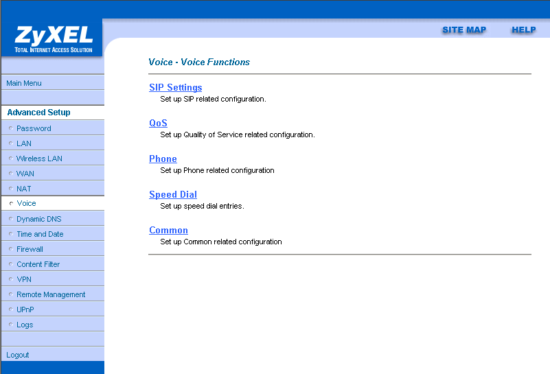 Роутер ZyXEL Prestige 2602HW поддерживает технологию VoIP (Voice over IP — голос через IP протокол) с использованием протокола SIP (Session Initiation Protocol — протокол инициирования сеанса) и позволяет подключить до двух телефонов. Рассмотрение возможностей технологии VoIP и протокола SIP не является целью данного обзора, более подробную информацию о них можно найти в Интернет.