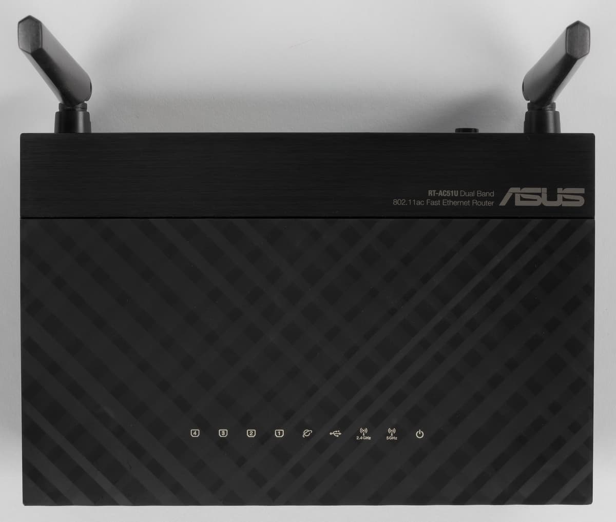 Год назад мы познакомились с роутером Asus RT-AC52U, который позиционировался производителем как самое доступное решение с протоколом 802.11ac. Этот маршрутизатор предлагал схему «100+300+433», так что о существенном росте производительности речи не шло, однако наличие диапазона 5 ГГц позволяло более комфортно пользоваться беспроводным соединением на современных смартфонах, а максимальное преимущество получали именно модели со встроенным контроллером 802.11ac. В бюджетном сегменте сложно обойтись без ограничений и компромиссов, которыми в данном случае выступили проводные порты и конфигурация точки доступа на 5 ГГц с одной антенной. Но, несмотря на эти особенности, назвать данную модель доступной по стоимости трудно. В этом материале мы познакомимся с роутером Asus RT-AC51U, который, как ясно по названию, стои́т в линейке чуть ниже и имеет меньшую цену.