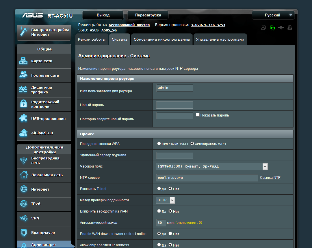 Основное тестирование роутера проводилось с прошивкой версии 3.0.0.4.376.3754.