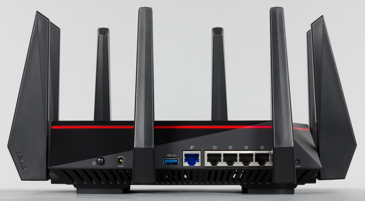 Выпуском роутера RT-AC5300 компания Asus еще раз подтвердила свое лидерство в сегменте домашних беспроводных маршрутизаторов. Это устройство имеет уникально высокую производительность в задачах обработки трафика, предоставляет гибкие возможности и отличную скорость при работе с беспроводными клиентами, а также способно эффективно выполнять некоторые задачи сетевого накопителя. Отличается модель и ярким дизайном корпуса, выделяющим ее среди конкурентов. Прошивка роутера имеет множество дополнительных сервисов, многие из которых нацелены на обеспечение дополнительной защиты сети пользователя.
