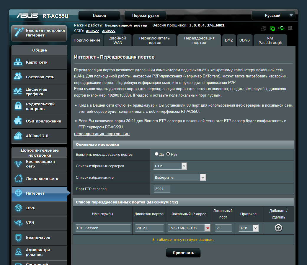 Для обеспечения доступа из интернета к сервисам внутренней сети есть DMZ, UPnP и таблица для ручной настройки правил трансляции портов. Как и у других моделей, есть возможность добавления своих записей в таблицу маршрутизации.