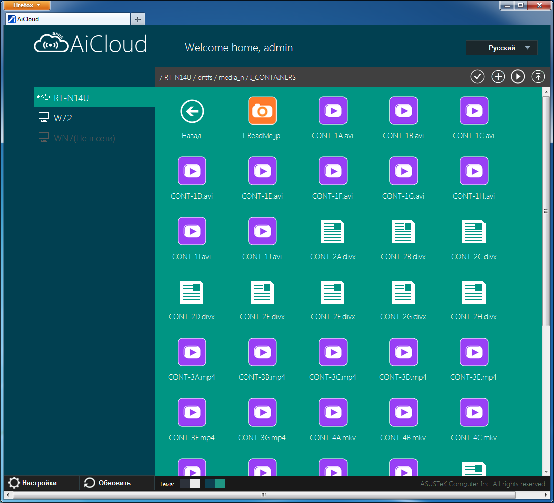 Отдельно стоит еще раз рассказать о функции AiCloud, тем более, что в данной модели производитель делает на ней акцент. Обычно доступные модели роутеров с портами USB имеют достаточно ограниченный набор возможностей по их использованию. AiCloud предполагает использование нескольких сценариев: доступ к USB-накопителю через интернет и веб-браузер, работа аналогичным образом с сетевыми ресурсами на подключенных к роутеру ПК в локальной сети (в том числе включение питания компьютеров по технологии WOL), синхронизация папки на USB-накопителе с сервисом Asus WebStorage.