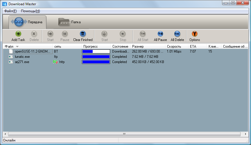 В устройстве реализована также функция автономной системы загрузки файлов по протоколам FTP, HTTP и BitTorrent. Для управления ей необходимо установить на ПК специальный клиент, который мы опишем позже.