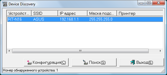 Для выполнения определенных действий с роутером, производитель предлагает использовать комплект утилит. Первая из них — Device Discovery — как и следует из названия будет полезна если вы вдруг потеряли устройство в сети. Она может определить IP-адрес роутера и вызвать браузер для его настройки.