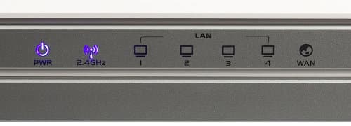 На переднем торце находятся все индикаторы — статус, Wi-Fi, WAN, 4×LAN. Цвет они имеют исключительно голубой и не очень сильно освещают квартиру в темноте, правда их работу видно не только с панели но и из упомянутой перфорации на корпусе.